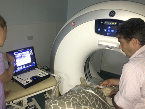 Ultrasound machine in use (after CT scan)